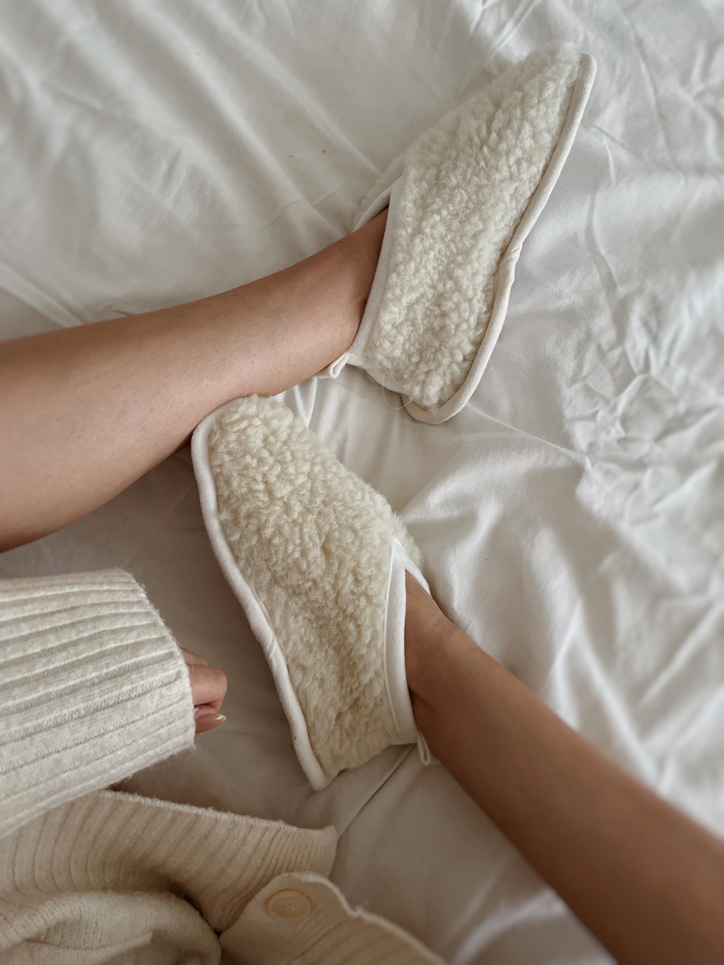 Snuggle up at home with our bestselling, luxury merino wool Mama Binibooties in our forever fave - MILK. Crafted from the finest merino teddy with natural leather soles - trust us - these are set to become your perfect plus one for cosy moments spent at home.