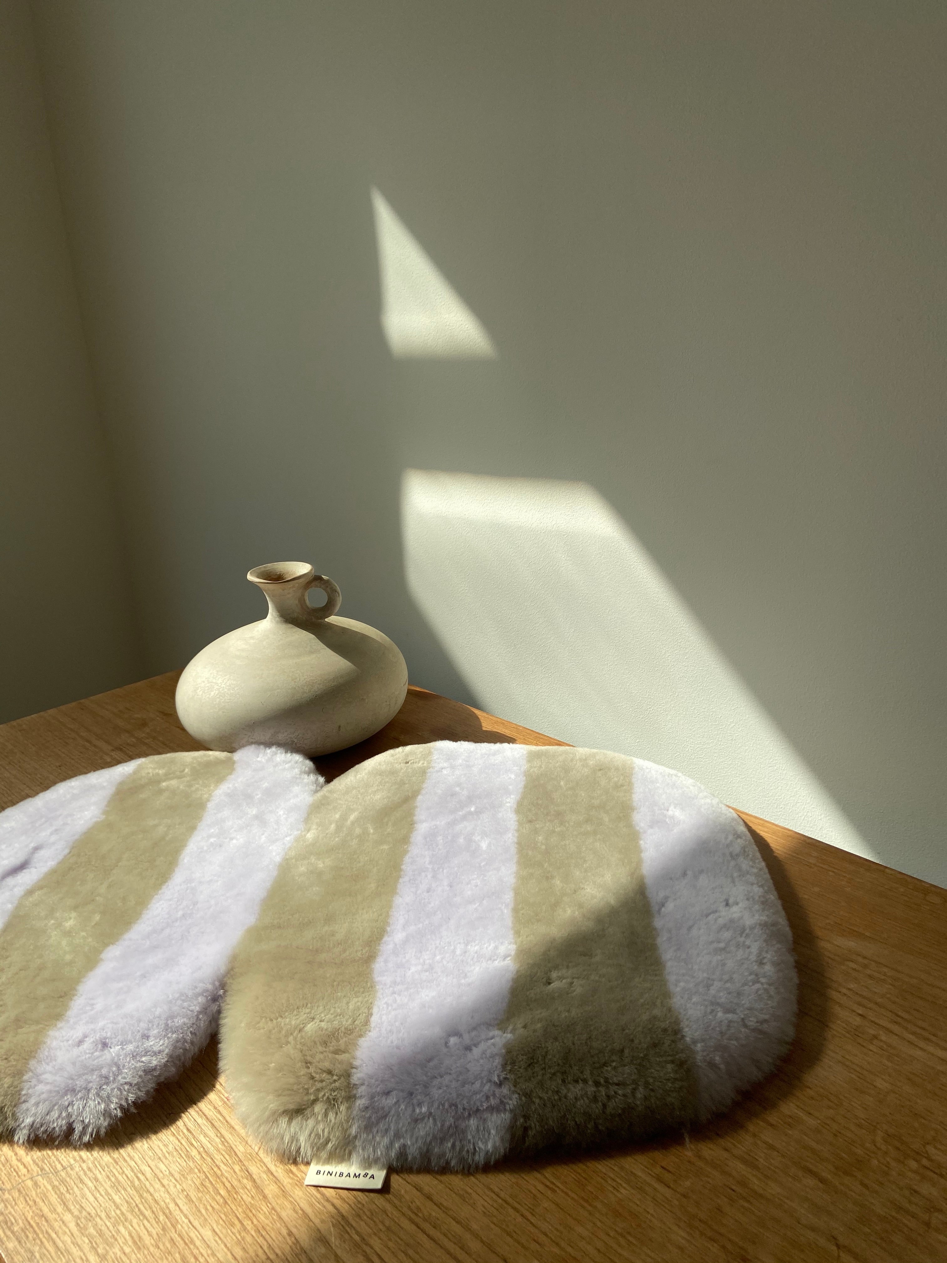 Sheepskin is a natural material. Variations in the colour, markings, pile & patina will vary from sheepskin to sheepskin & are part of the natural character of our products. No two sheepskins are ever the same, making every BINIBAMBA unique.