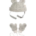 What to wear today? BINI has the answer. Our outlook is cosy, whatever the weather. Bundle includes our pure merino heroes the Teddy Hat & Baby Mittens in CLOUD.