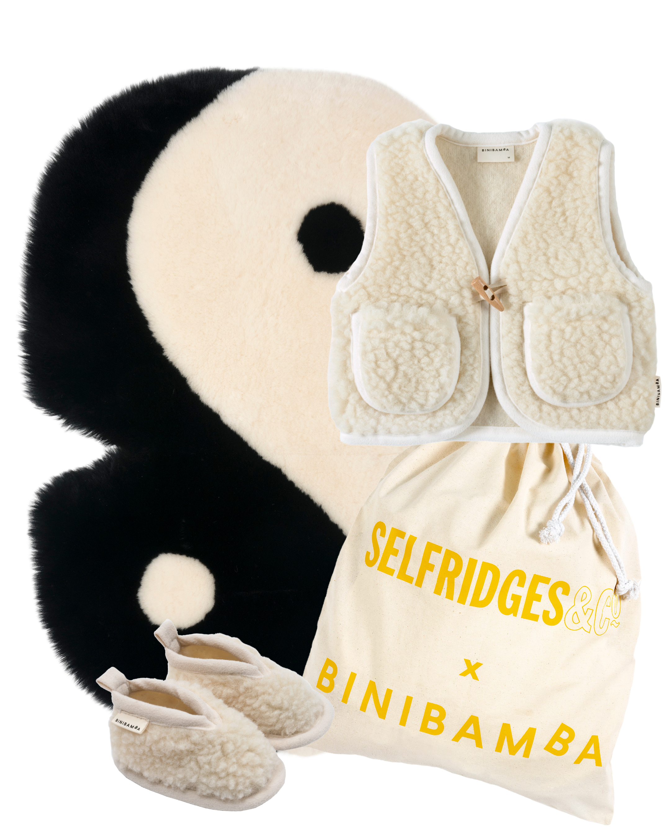 This limited-edition features our Selfridges&Co exclusive Yin Yang Snuggler®, paired with matching cult BINI classics - the Snugglevest & Binibooties in MILK. All wrapped up in our limited-edition Selfridges&Co X BINIBAMBA dustbag. Name us a better gift!