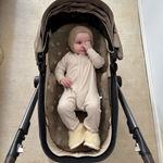 The Fawn Snuggler ® is available in Detachable Harness Snuggler® style. This is our most popular style & fits all buggies & strollers with a 3 or 5 point harness where the waist & shoulder straps can be undone. Simply undo the harness from the buckle, thread the shoulder straps & buckle through the pre-cut harness holes, fasten & you’re ready to roll.