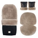The full BINI kit, the Ultimate Buggy Bundle features our signature merino sheepskin Puffmuff®, Snuggler® & Coated Buggy Mitts in our forever fave, TOAST.